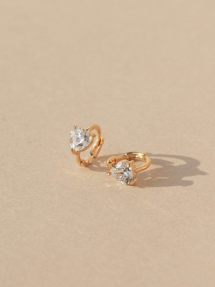 14K Heart Cubic mini huggie
