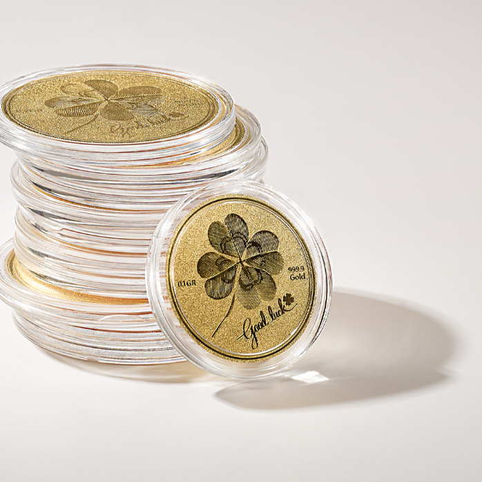 Đồng Xu Vàng 24K 9999 Cỏ 4 Lá May Mắn - Biểu Tượng Của Sự Thịnh Vượng